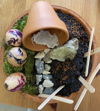 Constructing an Easter Garden is a tactile way for children to engage with the Easter story. They can collect stones to use as the tomb/cave and find little sticks for making crosses. A mini garden the size of a dinner plate can make a lovely centrepiece during the holiday weekend and children can retell the story in their own words.