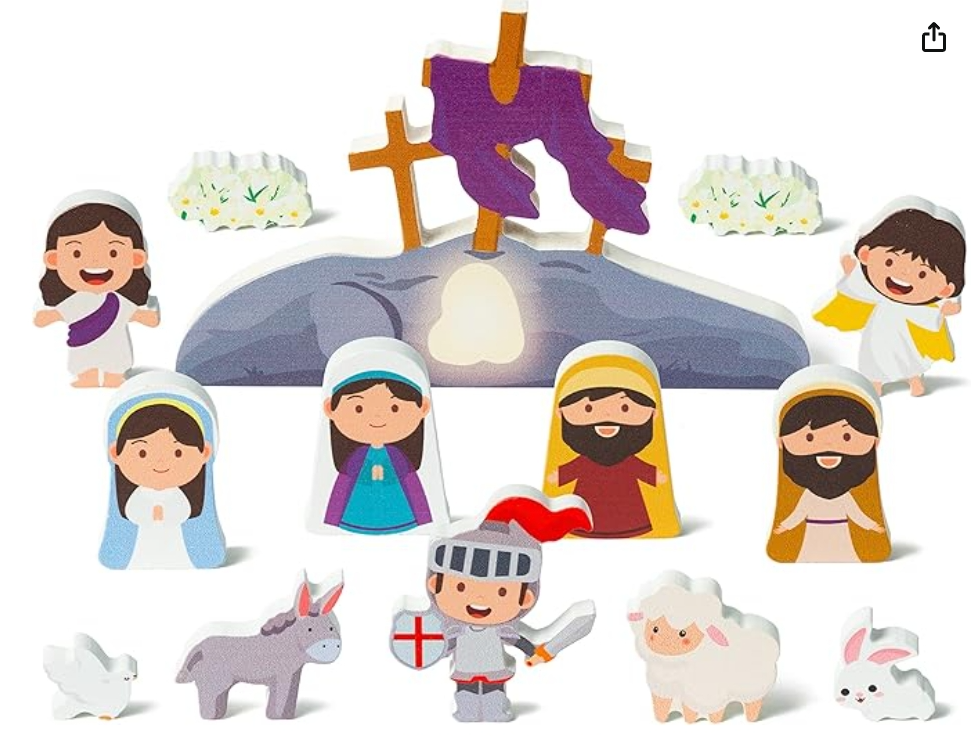 Many households have special nativity scenes which form part of their Christmas decorations during the festive period, but what about an Easter scene? A robust one will allow children to play with the figures and act out the story, and to ask questions about the different characters.
